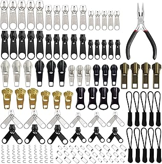 Queta Fermeture éclair Reparation Kits de Fermeture Éclair Remplacement de Fermeture Éclair pour Vestes, Sacs, tentes, Bagages (Argent & Noir) (85pcs)