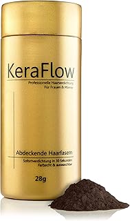 KeraFlow PREMIUM poudre capillaire pour épaissir les cheveux - cheveux pleins en 30 secondes - fibres capillaires pour camoufler les cheveux clairs et les zones chauves - 28g (Brun foncé foncé)