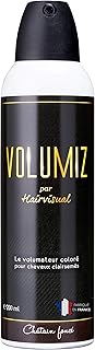VOLUMIZ Spray poudre cheveux 2-en-1 : Correcteur retouche racines & cheveux blancs - Colorant alopécie, Calvitie & Densifiant cheveux clairsemés pour Homme & Femme (Châtain Foncé, maxi format 200ml)