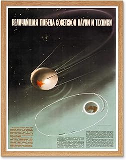 Wee Blue Coo Space Cultural Science Sputnik Space Craft Satellite USSR Wall Art Print Mur Encadré Décor 30 x 41 cm