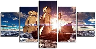 Sxuefang Toile Murale Rouge Voilier mer HD Art déco Peinture Spray Peinture Moderne Simple Home Chambre