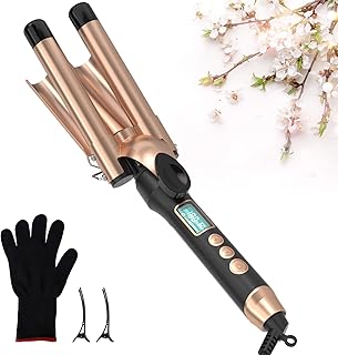 Fer à Boucler, avec Affichage de LCD et Minuterie,Température Réglable,Boucleur Céramique Avancée de Chauffage Rapide,Bigoudis pour Cheveux Long/Courts avec Support en Métal et Gant Anti-brûlure (Or)