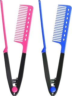 2 Pièces Peigne à Lisser Cheveux Peignes de Brosse de Cheveux de Salon Coiffure Styling Lisseur Peigne à Lisser en V Peigne Lisseur pour Cheveux Noueux (Roes Rouge, Bleu)