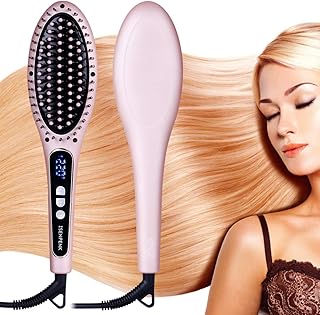 Peigne à Lisser Zeonetak, Affichage LED, Brosse à Lisser Ionique pour Cheveux Crépus et Soyeux, Lisseur Chauffant en Céramique, Anti-frizz + Arrêt Automatique Brosse à Lisser Portable